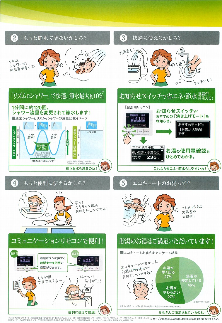 C02の排出量は、燃焼式給湯機に比べて約50%カット。環境にやさしい「エコキュート」で、エコな快適生活を実現します!