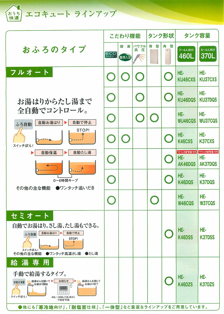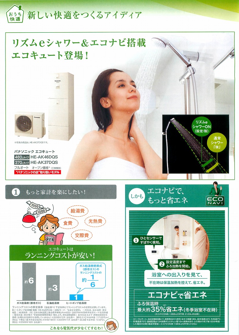 安心で清潔な「IHクッキングヒーター」や、環境にやさしい「エコキュート」で、エコな快適生活を実現します!